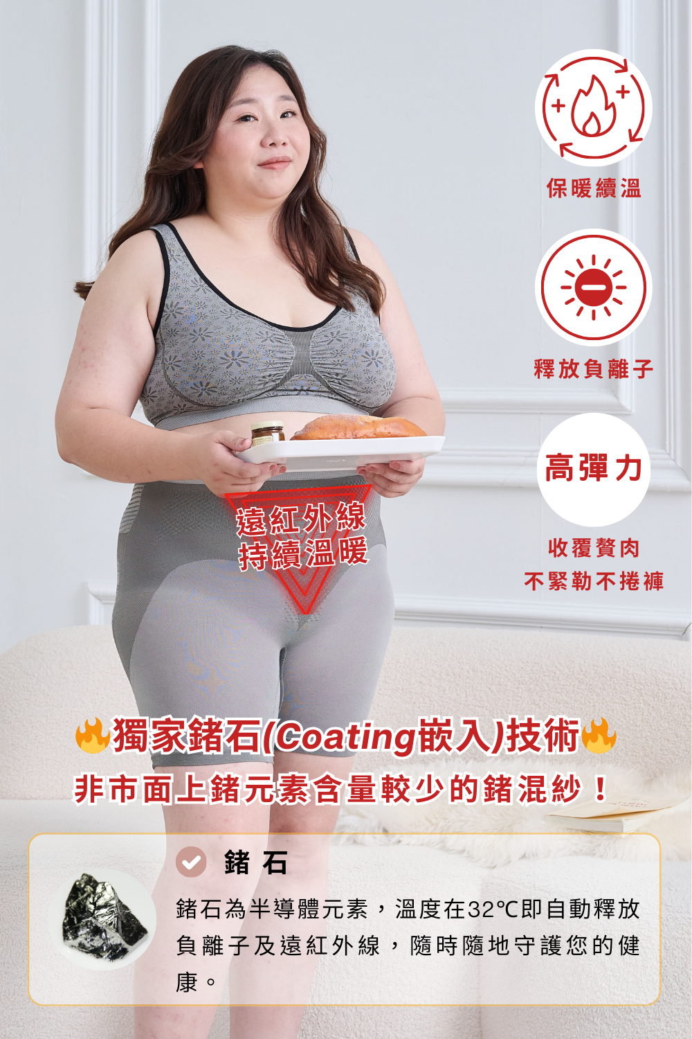 【鍺石】為高科技奈米礦石材質,與肌膚共振時會釋放遠紅外線及負離子。本商品採用高科技鍺石嵌入技術。